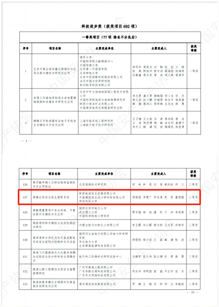 “中國安全生產協會第四屆安全科技進步獎”!