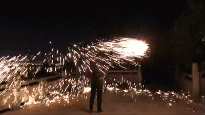 2019年12月31日,浙江義烏市某公園內,一名男子燃放鋼絲棉煙花,火星引燃公園的樹木并向四周蔓延起火。